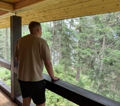 Отличное место для отдыха в тишине и спокойствии, в окружении кедрового леса. Просторные и уютные номера со всем необходимым, есть зона для барбекю. С террасы можно наблюдать белок и бурундуков, а на лужайке иногда гуляют коровы – настоящая атмосфера таёжного уюта. Хозяин Денис Юрьевич очень внимательный, делает всё для комфорта гостей. Жили на втором этаже, дискомфорта от соседей и слышимости не было. Обязательно вернёмся!