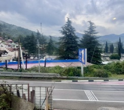 Путешествовали на мотоцикле. Остановились здесь на ночь. 10 км от Адлера, 30 км от Красной поляны. Рядом магазин Магнит, форелевое хозяйство, ресторан.
