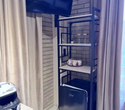 Из минусов, слишком маленькая комната, если у вас клаустрофобия уточняйте при бронировании, нет фена в номере, нет шкафа, вещи придется складывать в открытую тумбу, что не удобно.
