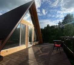 Прекрасное место, все очень чисто и уютно. Шикарный вид на лес, в доме есть абсолютно всё, что необходимо. Шикарная возможность отдохнуть и перезагрузится. Большой бассейн, качели, гамак, костровище. На улице красивая подсветка. Эстетическое восприятие 100%