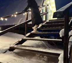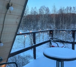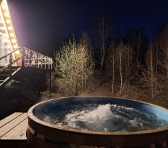 Хотелось бы сказать огромное спасибо за бочку (мы с парнем в восторге наблюдали в теплой воде в мерзлоте за падающими звездами). И за возможность приехать с собаками. Побегали за зайцами, походили по Березняку, познакомили щенят с природой.