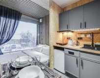 Мы с женой выбрали этот отель для отдыха на горнолыжном курорте, и не прогадали! Номер был просто шикарный, с огромными панорамными окнами, через которые открывался вид на горы. Особенно порадовало, что есть мини-кухня: мы готовили себе завтраки прямо в номере, экономя время и деньги. Персонал очень внимательный, всегда помогали с информацией по маршруту до подъемника. Рекомендую!
