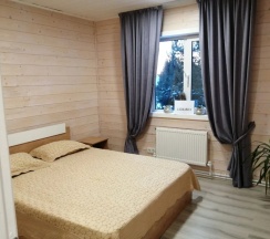 Частный дом с верандой и сауной расположен в Рузе, Московской области, в 70 км от МКАД. Рядом с домом есть лес для прогулок, сетевые магазины, аптеки. Возможна доставка из сетевых магазинов. В округе расположены Рузское водохранилище и деревня.В шаговой доступности расположена остановка общественного транспорта. На транспорте можно добраться до железнодорожного вокзала.Дом вмещает до 6 человек, возможно размещение до 8 человек включительно за дополнительную плату. На втором этаже коттеджа расположены 3 отдельные изолированные комнаты и санузел. Две комнаты оснащены двуспальными кроватями, в оставшейся комнате — две односпальные кровати, которые при необходимости можно сдвинуть в одну кровать.На первом этаже коттеджа расположена кухня-гостиная со столом и раскладным диваном, санузел и сауна. Кухня оснащена холодильником с морозильником, микроволновой печью, электрическим чайником, плитой. На кухне есть столовая посуда: тарелки, в том числе глубокие, сковорода, кастрюли, приборы, бокалы, кружки, стаканы.Для гостей предоставляются полотенца, постельное бельё, гель для душа, шампунь, мыло.Гостям доступны Wi-Fi, телевидение, онлайн кинотеатры.На территории дома есть мангальная зона, батут, бассейн и сауна.
