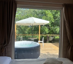 Очень понравилось что у домиков есть джакузи. На территории есть бассейн. Домики чистые и уютные, есть все необходимое. По территории бегают милейшие котята