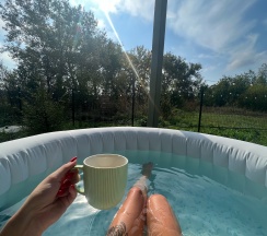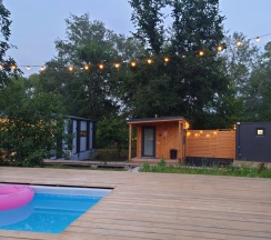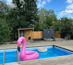 Провели несколько деньков, очень довольны. Локация отличная, от города недалеко, но воздух уже чистейший. Домики красивые и уютные, чисто и есть все, что необходимо (куча полотенец, сушилка, зонт, вода питьевая, посуда, плитка, холодильник, средства против комаров, тв с фильмами, настолки и тд). Жить комфортно. Бассейн чудесный, днём можно позагорать на лежаках. А джакузи хорошо принимать вечером, вода очень теплая, и удобно, у каждого домика свой. Веранда есть у каждого домика, мангальная зона. Администратор всегда на связи и готов помочь. Персонал приветливый. В Лесной домик можно с питомцами, поэтому своих любимцев взяли с собой. До Пятерочки можно дойти пешком мин за 30, есть доставка ВВ и Перекрестка. И ещё на территории абсолютно ручные и ласковые, но ненавязчивые котики. Уезжать не хотелось, честно))