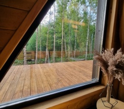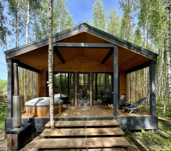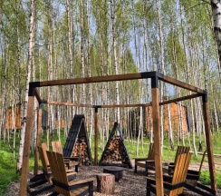 Отдыхали с друзьями в двух домиках. Остались в полном восторге: тихая, уютная берёзовая роща с красивыми и очень чистыми домиками, внутри есть абсолютно все! На территории 3 домика, баня, костровая зона и детская площадка! Баня на дровах, с купелью на веранде💣, у каждого домика свой чан - это настоящий кайф🔥!