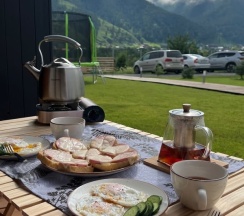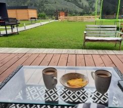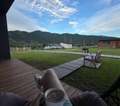 Замечательное место для отдыха! 😍☀️ Очень красивая, просторная и ухоженная территория с красивым видом на горы, у каждого домика своя мангальная зона со всем необходимым для приготовления. Есть терраса для уютных завтраков или прекрасного вечернего ужина, когда территория освещается фонариками😌🥂