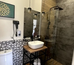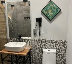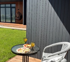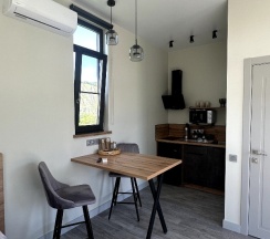 Номер чистый, уютный, современный и очень теплый☺️ также есть все необходимое, начиная от техники- заканчивая средствами личной гигиены, очень удобно 👍 эстетичная посуда, да и сам номер и территория эстетическое наслаждение😍😍😍