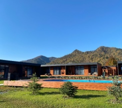 Потрясающее и умиротворенное место для тихого семейного отдыха! Шаговая доступность до реки Катунь и горные пейзажи вокруг никого не оставят равнодушным! Отдельно хотелось бы подчеркнуть отапливаемый бассеин - поплавать в любое время года это настоящий восторг. Комфортабельные номера оснащенные по последнему слову техники, зона покрытия wi fi на территории всего апарт отеля. Это именно то место, где комфорт и уют ставится во главе всего! Обязательно вернусь сюда ещё, спасибо вам огромное за массу положительных эмоций