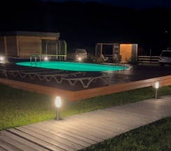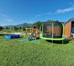 Бассейн с подогревом, в скором времени еще появится банька - идеально 🫶 Также на территории есть детский уголок, деткам 2х лет было интересно, для более старших деток есть батут 👍