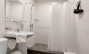 В номере двуспальная кровать, тумбочка, холодильник, сплит-система, телевизор, шкаф для одежды. На полу ковровое покрытие. Индивидуальный санузел со средствами личной гигиены.