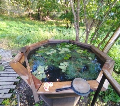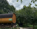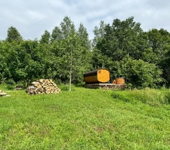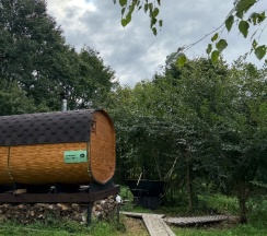 На территории есть баня-бочка - нам понравилась, небольшая, уютная, можно попить чай.