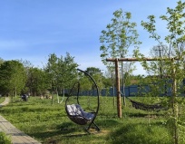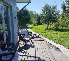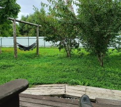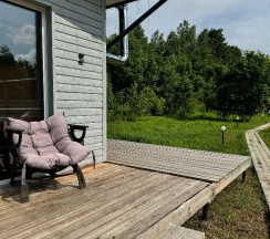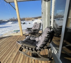 Есть своя веранда с креслом качалкой, столиком и мангальной зоной.