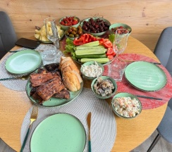 С собой ничего кроме питания и воды везти не нужно, есть вся посуда, полотенца, халаты, решетки и мн.другое.