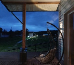 Из плюсов: тишина, природа, красота. Домик имеет гостиную и 2 спальни, на большую семью комфортно. Есть все, от халатов до зубных щеток. На полный день брали питание на соседней базе, чтоб не заморачиваться с готовкой. Есть камин, все удобства.
