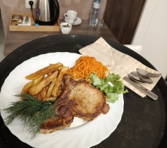 Спасибо большое за чистые номера, помощь, возможность заказать ужин в номер с огромным ассортиментом еды. Тапочки огонь! Халат, всё что нужно в номере есть. Бутилированная вода, кофе, чёрный и зелёный чай, даже швейный набор. Шторы блэкаут! Завтраки включены в стоимость номера. Просто вау. Обязательно вернусь.