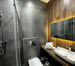 - душевой набор (гель для душа, шампунь, жидкое мыло, махровые полотенца);