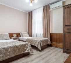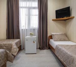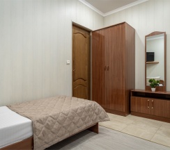 Классический номер вместимостью до 3 гостей. В номере двуспальная кровать и одна односпальная кровать, телевизор, кондиционер. Ванная комната на этаже.