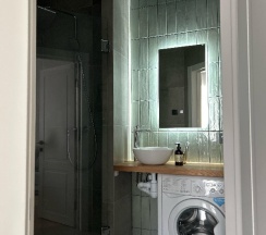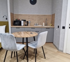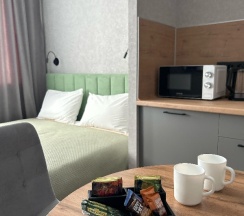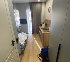 Полный восторг, есть все, даже сушилка и стиральная машина. Апартаменты находятся на втором этаже . Возле каждой двери мини-сейф, там ключи. Заселение и выселение бесконтактное, по вотсапу выслали инструкции. Администратор всегда на связи, вежливая, залог вернули. В номере все новейшее, есть чайник, раковина, посуда, мини-плита, утюг, гладилка, холодильник. Wi-Fi хороший! Замечательный номер, обязательно вернемся еще!