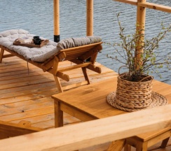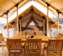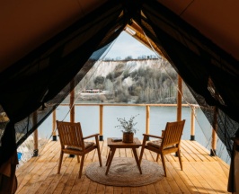 Просторные семейные домики на четыре гостя. Пространство устроено так, что гости смогут разместиться для совместной настольной игры с друзьями или детьми, а после устроить уютный ужин за большим столом, где открывается замечательный вид на озеро и меловые склоны. Возможно размещение до шести гостей. В домике двуспальная кровать и кушетка, раскладывающаяся в полноценное двуспальное место. Гостям предоставляются полотенца и постельное белье. Удобства общие на территории глэмпинга.