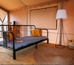Все домики оборудованы комфортабельными спальными местами, кондиционерами, террасами и мебелью. Гостям предоставляются полотенца и постельное белье. Удобства общие на территории глэмпинга.