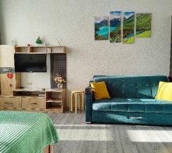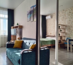 Очень понравилось в Fly Altay, стильная и уютная студия. Очень чисто, есть все необходимое, просто даже придраться не к чему 😀 Расположение очень удобное, вид из квартиры просто супер. Дом новый, во дворе есть хорошие детские площадки, рядом много кафе и ресторанов. Заселение и выселение бесконтактное.