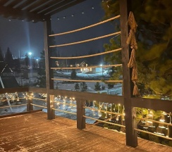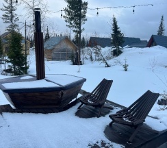 Мы заказывали Фурако к 10 часам вечера, на улице было около 10 грудосов тепла, а в Фурако 40. С комфортом сидели в ней втроем(я, муж и наша дочь 6 лет). Это было не передаваемое ощущение, когда на улице уже очень прохладно, а тебе очень тепло! Красивый вид вокруг, гирлянды по периметру веранды и дома, а также было видно огни домов Шерегеша! Хотя бы раз обязательно нужно насладиться Фурако.