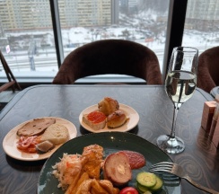Новый хороший отель, улучшенный номер по площади один из самых больших, где нам довелось останавливаться, высокие потолки. Есть мини колонка с алисой (было бы, конечно, супер круто, будь она подключена к умному дому🤗). Выдают не только детские гигиенические наборы, но и маленькие халаты и детские мягкие тапочки. Ванная комната оснащена всем, а если что-то нужно дополнительно, приложен целый список того, что можно запросить на ресепшн. В номере утюг и гладильная доска, телевизор даже грузит ютюб😅 постельное белье белое и хрустящее, в номере очень тепло. Персонал очень приветливый, до заселения звонят, спрашивают нужно ли раскладывать диван сразу. Поскольку были 31.12. на ресепшн разливали игристое и угощали брауни и мандаринками. Для постояльцев деток были заготовлены небольшие сладкие подарочки. В 00-15 устроили очень качественный и красивый фейерверк, спасибо большое за это💞 Шведский стол на завтраке не самый лучший и разнообразный в моей жизни, но все блюда были качественными, выпечка свежей, икра не воняла рыбьим жиром🙈 Но, увы, самый жирный минус - наш номер был прям над рестораном, в котором по случаю нового года было спец обслуживание и музыка долбила так, что вибрировал столик в номере. Если вы ночью проводите корпоративы, то либо делайте звукоизоляцию в номерах на 100% защищающую от шума, либо не селите в номера на это время постояльцев. Особенно семьи с детьми. А ведь я бронировала номер за 3,5 месяца… Оооочень долгое заселение непонятно, кстати, чем вызванное. Все документы у нас были в оригинале и всё равно проторчали на стойке минут 30-40 Очень слабый вай-фай почему-то общий на всю гостиницу, а не на каждый номер персональный. Конечно, в новогоднюю ночь он будет проседать. Напор воды в ванной слабый, система лейки в душ-кабине неудобная. Закрыта лестница между этажами, попасть можно только по магнитной карточке, ключ от номера не подходит. Ждешь переполненный лифт, чтобы спуститься на 1 этаж😞 Можно и вернуться, для уровня Хаба считаю всё оч достойно.