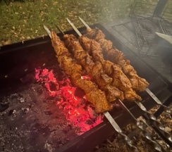 Мангал оборудован шампурами и решётками (розжиг и уголь - свой).