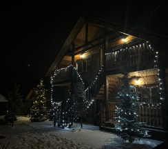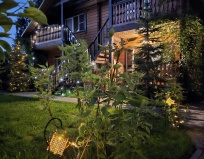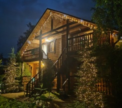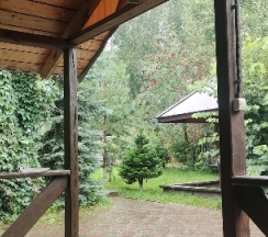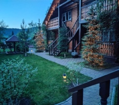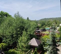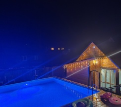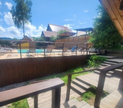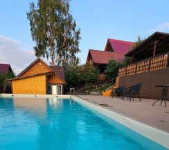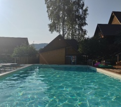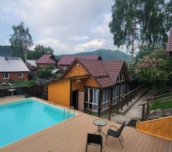 Уютный шале, рядом бассейн с шезлонгами, есть мангальные зоны с беседками. Также на территории есть кафе
