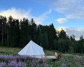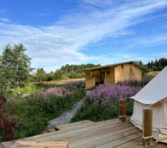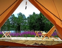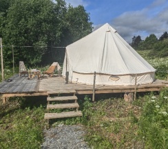 Приятное и очень красивое место, где можно насладиться природой и отдохнуть. Очень красивая природа, озеро великолепное! Очень понравилось гулять рядом, природа чудесная. Брали лодку напрокат 2 раза, очень понравилось, можно проплыть все озеро, красотища. Рядом есть 2 горы с указателями и маленький можно так сказать водопадик, хозяева приветливые, отзывчивые и могут подсказать что где. Условия хорошие, классная палатка-шатер, есть теплые простыни и воздухонагреватель, но готовьтесь к походным условиям и переменчивой погоде. Есть кухня, чистая вода из источника, все необходимое для готовки - соль, кастрюли, газовая плита, чайник, холодильник, кухонные инструменты - на всех общая кухня, нам было удобно готовить и хватало места. Комфортный душ, есть фен, и 2 хороших туалета. Полотенца нужны свои. Палаток несколько + домики, гости друг другу не мешают, палатки расположены на расстоянии насколько это возможно. Интернет у нас не ловил, это позволило еще лучше отдохнуть. Очень рекомендую данную локацию! Спасибо большое хозяевам за замечательный отдых!