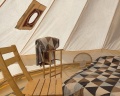 В шатрах есть электричество, обогреватель, и БИНГО матрас с подогревом. Кухня с холодильником, плитой и мойкой, душевая с горячей водой и туалет (не дырка в полу, а полноценный, к тому же и чистый унитаз) общие, в отдельном строении.