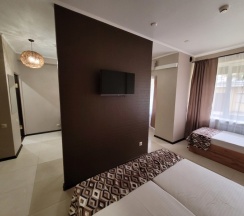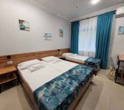 Небольшой уютный отель. Расположение очень удачное, не далеко от трассы. Очень удобно для людей, которые едут на моря😄 Номера чистые, кровати удобные. Постельное белье и полотенца были безупречными. Интернет отличный. В шаговой доступности пятерочка, магнит и аптеки. Однозначно рекомендуем.