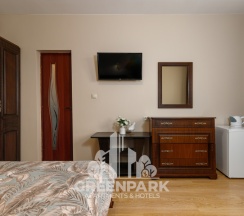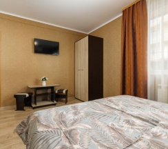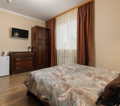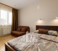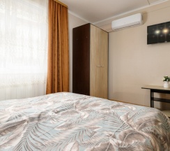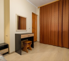 Номер трехместный, площадью 20 кв.м, в котором установлена одна двуспальная кровать и кресло-кровать. Номер оснащен всеми современными удобствами, которые сделают Ваш отдых максимально комфортным: душ, холодильник, чайник, ванные принадлежности (гель для душа, мыло), полотенца. Номер находится на 1 этаже.