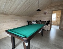 Уютный дом с тремя спальнями, бильярдом, баней и чаном на улице дополнит ваш отдых невероятными ощущениями, а наличие озера позволит покататься на коньках зимой и порыбачить летом.