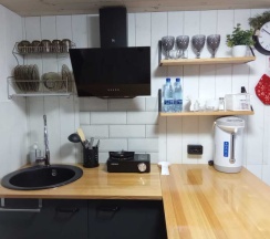 Внутри идеальная чистота, всё аккуратно, есть вся необходимая посуда и техника для готовки, что очень удобно!