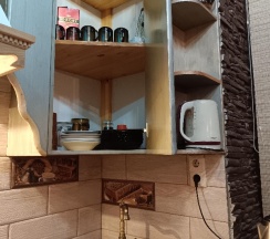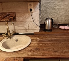 Есть газ, горячая вода, много посуды, теплые полы. Очень тепло. Никто не замерз