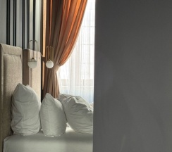 Очень уютный отель!! Неожиданно для небольшого города, уровень на отлично! Интерьер, высота потолков 4 метра, необычные ощущения пространства. Завтрак не шведский стол, на выбор, но очень сытный и хороший! Стоянка для автомашин есть. Приветливый вежливый персонал, чистота. В номере все есть, и вода и халат, тапочки, и фен вполне нормальный, не «гостиничный» вариант для мальчиков :)
