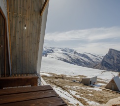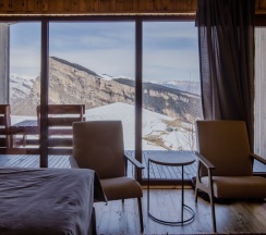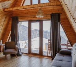 Коттедж с террасой и невероятным видом на Великий кавказский хребет. Панорамные окна и виды на укрытые сосновым лесом живописные горы. Коттедж на 2х гостей с двумя односпальными кроватями. Внутренняя отделка коттеджа выполнена из натуральной древесины.Есть кресла, шкаф, телевизор, журнальный столик, холодильник, сейф, телефон, фен, постельное белье, чайная станция.