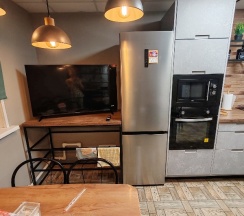 Ну чтож, все как на фото. Чистая функциональная кухня, новая без сколов посуда, есть духовка с конвектором , вытяжка и большая удобная раковина. Везде есть эл. Вентиляция в кухне и в сан. Узле и в номере, что приятно порадовало. Так же в хостеле несколько осушителей воздуха и очень чисто. На входе можно взять тапочки. В прачечной стоит стиральная машина + эл. Сушка. Это очень удобно. ( цены приятные ) 2 санузла 👍 В целом очень приятное впечатление , в номере чисто , администраторы приветливые вежливые. Все работает, все есть. До моря близко, магазины рядом. Однозначно 10 из 10 приятное и уютное местечко.