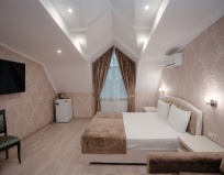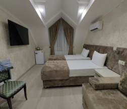 Останавливались по пути на море. Номер супер, большой, чистый, кровати удобные большие, белье белоснежное. В номере есть все необходимое, чайник, чашки, кофе, чай, сахар, телевизор огромный, кондиционер, в ванной мыло, зубные щетки с пастой, шампунь. При заселении уточнили во сколько мы планируем завтракать, спустились с утра, нас ждал уже накрытый стол на каждого проживающего, в моменте уточнили чай или кофе нам налить. Если б такой отель был на побережье, в нем точно нужно было бы бронировать проживание сильно заранее, потому что он более чем хороший!