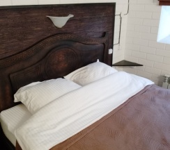 Отличные светлые номера, хорошее белье, все необходимое, есть кухня общего пользования. На улице парковка рядом, мангал, можно провести романтический вечер.