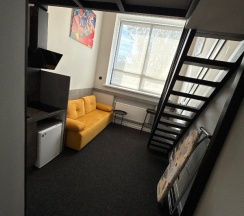 Метро в 15-20 минутах ходьбы, рядом есть продуктовые магазины (магнит, КБ). В номере всё необходимое - кухня (плита, мойка, микроволновка, холодильник, посуда на двоих, кастрюлька, сковорода), отдельный санузел с феном, сушилка для белья; утюга не было, но нам и не пригодился (а так видели в номере напротив и утюг с гладильной доской, думаю, если попросили бы, нам бы тоже выдали). Когда уходишь и забираешь ключ-карту, отключается всё электричество, но к вечеру холодильник всё ещё оставался холодным, с этим проблем не было.