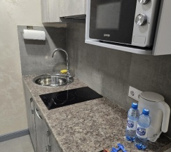 Жила с сыном 3 ночи. В основном всё понравилось. В номере просторно, есть самое необходимое. Звукоизоляция не очень. Чисто, есть вай фай, чайник электрический, микроволновка, минихолодильник, плита, вытяжка, фен, кондиционер, сенсорное мусорное ведро. Полотенца на двоих - по 3шт, гигиенический набор, одноразовые тапочки. Телевизор есть, но мы не разобрались. Посуда по минимуму на двоих: 2 кружки, по 2 тарелки глубоких и обычных, 2 ложки, 2 вилки, кастрюля маленькая, нож. Хотелось бы еще стаканов, ну нам не хватало. Были пакетики с чаем и сахар. Кулер в коридоре. Постельное белье чистое. Магазин "Верный" в 10 мин пешком. Рядом ресторан и кафе с приемлемыми ценами. Метро Технопарк и Зил недалеко, также Остров мечты. Много хостелов с мигрантами. Уборки не было, только в 3день пока нас не было выносили мусор. Полотенца не меняли. В ванной не хватает коврика, а то с душа выходишь на голый пол. В душевой кабинке есть только душевая лейка, не хватает крана еще отдельного.