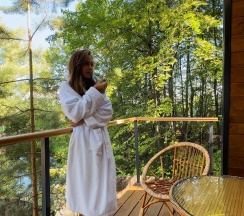Отличное место для отдыха со второй половиной. Домики с хорошей планировкой, очень уютные, с террасой и мебелью из ротанга прямо на берегу пруда. За территорией в нескольких минутах река Волга и смешанный лес, есть где погулять. Территория благоустроенная под камерами где постоянно поддерживается чистота и порядок, рядом с домом мангальные зоны, зона барбекю, беседка, баня, фурако, парковка, лобное место с качелями где можно приятно провести время на свежем воздухе как днем так и вечером, вечером особенно красиво когда включена гирлянда из лампочек. Интерьер в доме выше всяких похвал, функционально очень продуманный, есть все необходимое, большое внимание уделено деталям, всё от и до как говорится, начиная от штор, до фурнитуры и столовых приборов, все на 10 из 10, очень понравилась подсветка по контуру дома, вечером добавляет уюта и волшебства. Все вопросы решаются по звонку. Помощник по хозяйству подскажет что к чему. Отличное соотношение цена-качество, обязательно вернемся вновь.