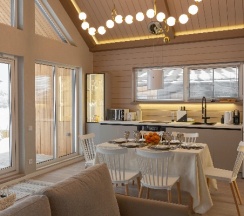 Дом классный 👍🏻 новый современный и очень стильный , каждая деталь сделана со вкусом) находиться в таком домике одно удовольствие! Большой бонус на территории есть детская площадка, дают ватрушки и лыжи ) и хочется отметить персонал , очень вежливый и профессиональный) обязательно вернемся!