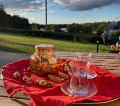 Так же во дворе было прекрасное чаепитие с самоваром и вкусным чаем и даже небольшой дождик не помешал насладиться моментом.