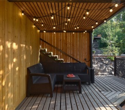 Просторный, трехкомнатный коттедж с двумя санузлами и видовой террасой. Вмещает в себя до 7 человек.