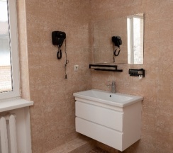 Отличное месторасположение! Чисто, аккуратно, внимательный добрый хозяин! В начале ноября в 2х местном номере на 1 этаже: есть полотенца, тапочки, фен, душ, чайник с кружками ТВ, 2 бутылки воды при заезде, открытая вешалка. Всё компактно, ничего лишнего. Остановки рядом, до кафе и магазинов 2 минуты, Парк Цветник 7 минут. Вцелом только положительные эмоции!
