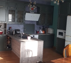 Есть все для комфортного проживания, в том числе современная кухня, большой холодильник, морозилка, посудомойка, стиральная машина.
